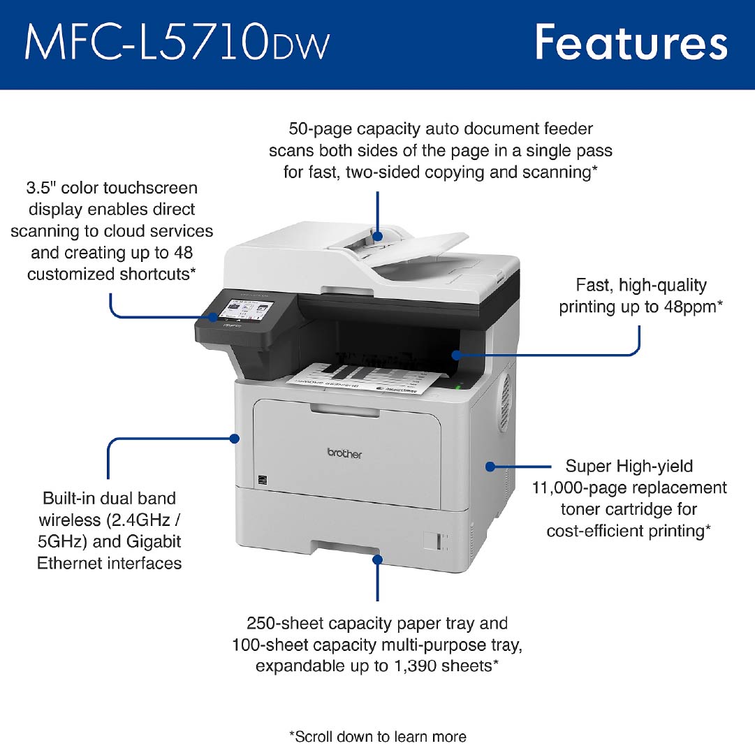 1 Brother MFC-L5710DW Wireless Business Monochrome All-in-One Laser Printer with Networking and Duplex Print, Scan, and Copy