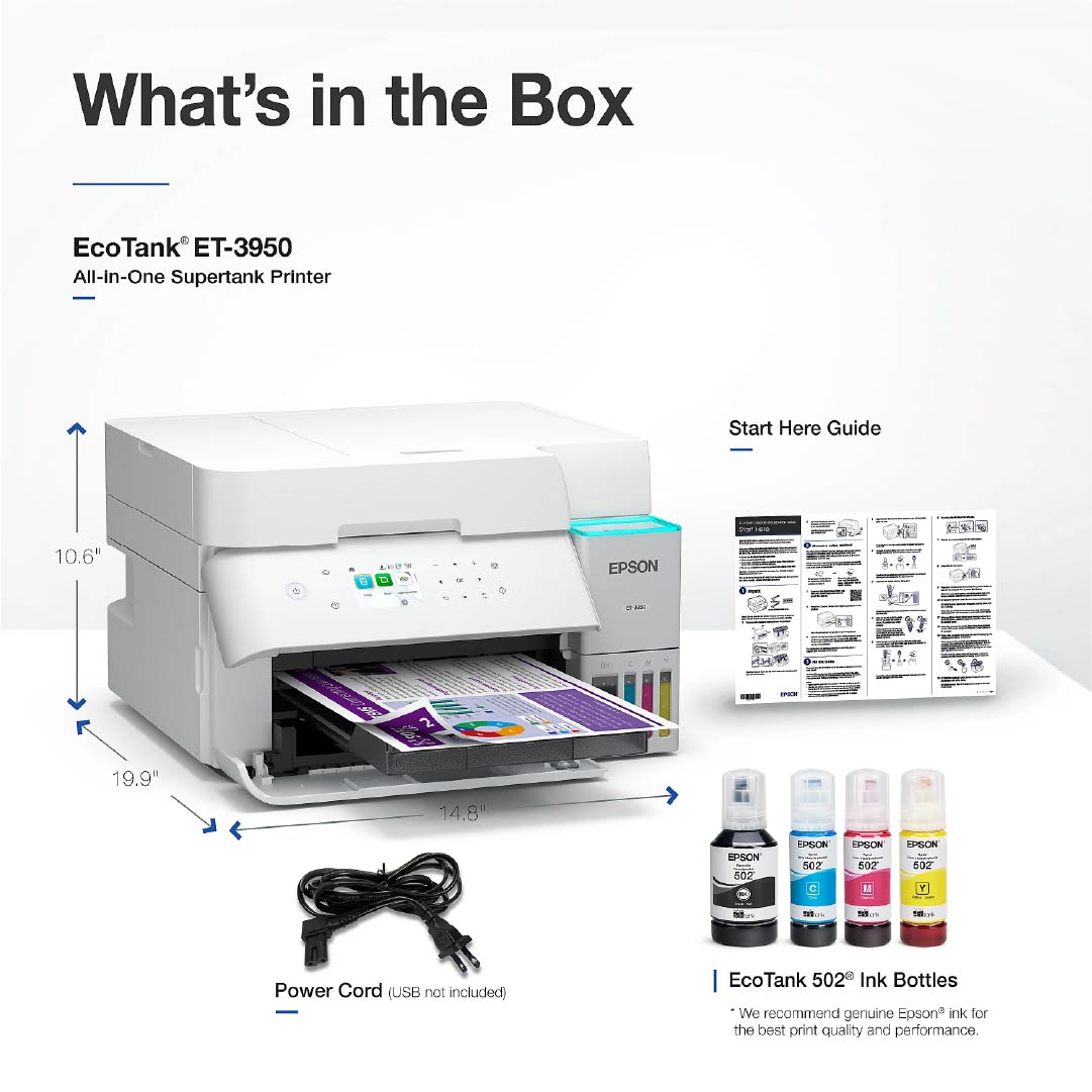 5 Epson EcoTank ET-3950 Wireless All-in-One Color Supertank Printer – White |